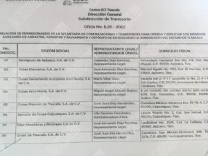 Pero, todas las concesionarias de la lista que envió Eduardo Valiente a las policías de Tlaxcala, cuentan con la documentación para tramos federales y no así para las carreteras de competencia estatal.