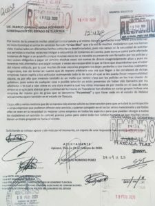 El documento también fue enviado, desde el pasado 18 de febrero, al Congreso del Estado, a SECTE y a la Secretaría de Gobierno, para que tomen cartas en el asunto de forma inmediata.