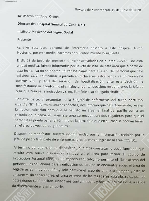 Entre las peticiones que exigieron, destacaron la de insumos adecuados, pruebas Covid-19 para todos, EPP de calidad, regaderas en buen estado, entre otras.