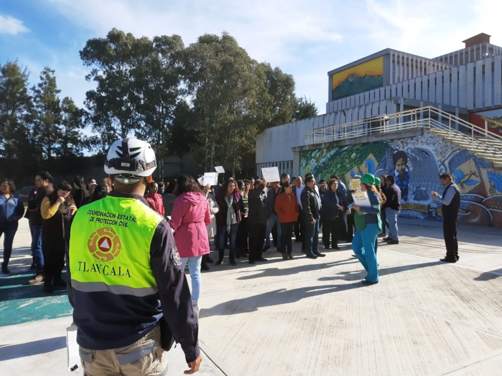 Con el objetivo de fortalecer los planes y programas internos en materia de Protección Civil de la Secretaría de Educación Pública del Estado (SEPE) y la Unidad de Servicios Educativos de Tlaxcala (USET), la Coordinación Estatal de Protección Civil (CEPC) realizó un simulacro con hipótesis de sismo de magnitud 7.2 y epicentro en las costas de Oaxaca.