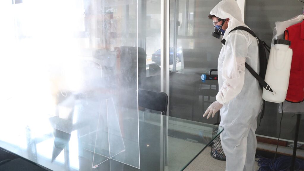 Con el propósito de garantizar espacios seguros para los trabajadores y visitantes que acuden a realizar algún trámite o servicio a la Secretaría de Educación Pública del Estado (SEPE) y a la Unidad de Servicios Educativos de Tlaxcala (USET), personal realiza una jornada de desinfección en la totalidad de las oficinas centrales.