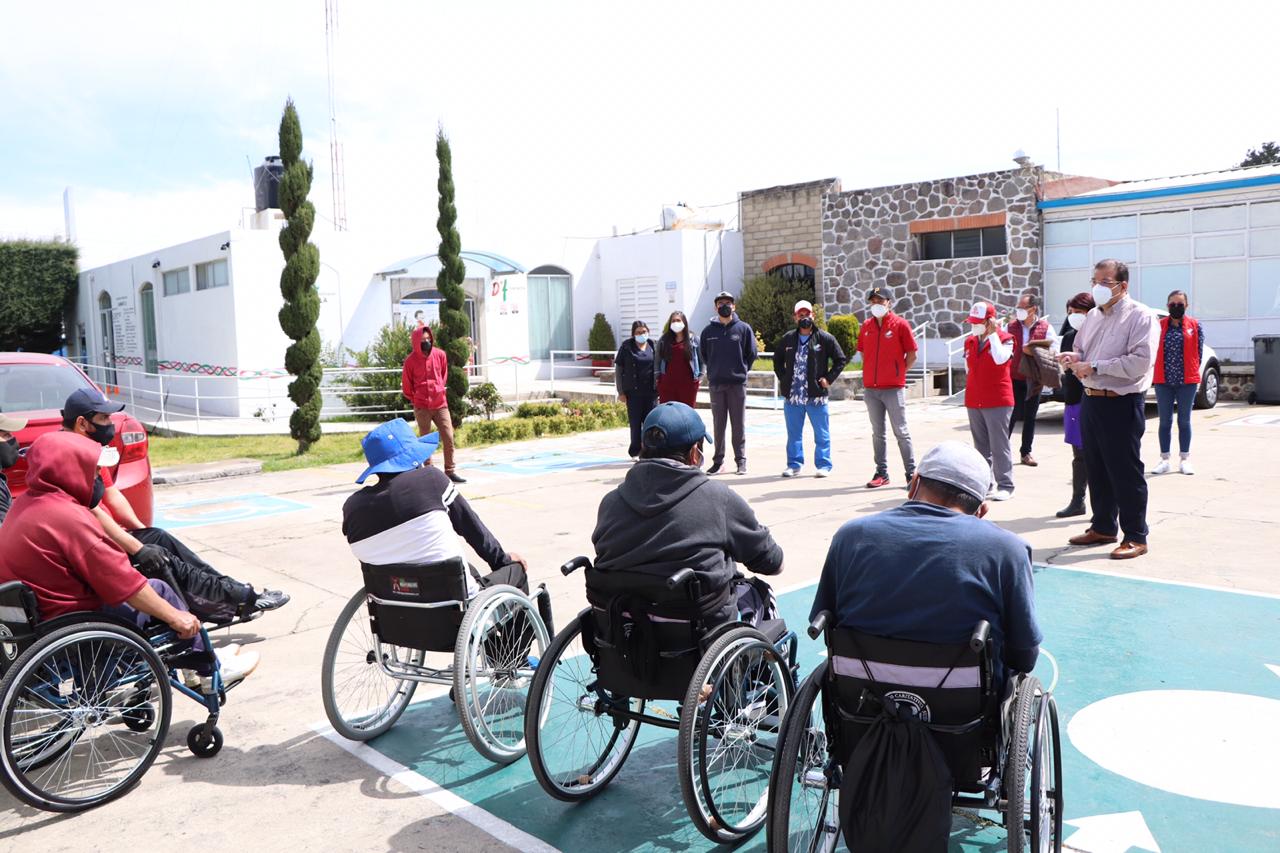 Huamantla, Tlax.- Promover la incorporación de personas con alguna discapacidad al ámbito laboral, es una de las líneas de acción del Presidente Municipal de Huamantla Jorge Sánchez Jasso, quien ofreció a los seis pacientes que toman entrenamiento en el buen dominio de la silla de ruedas, realizar las gestiones para incorporarse a alguna empresa.