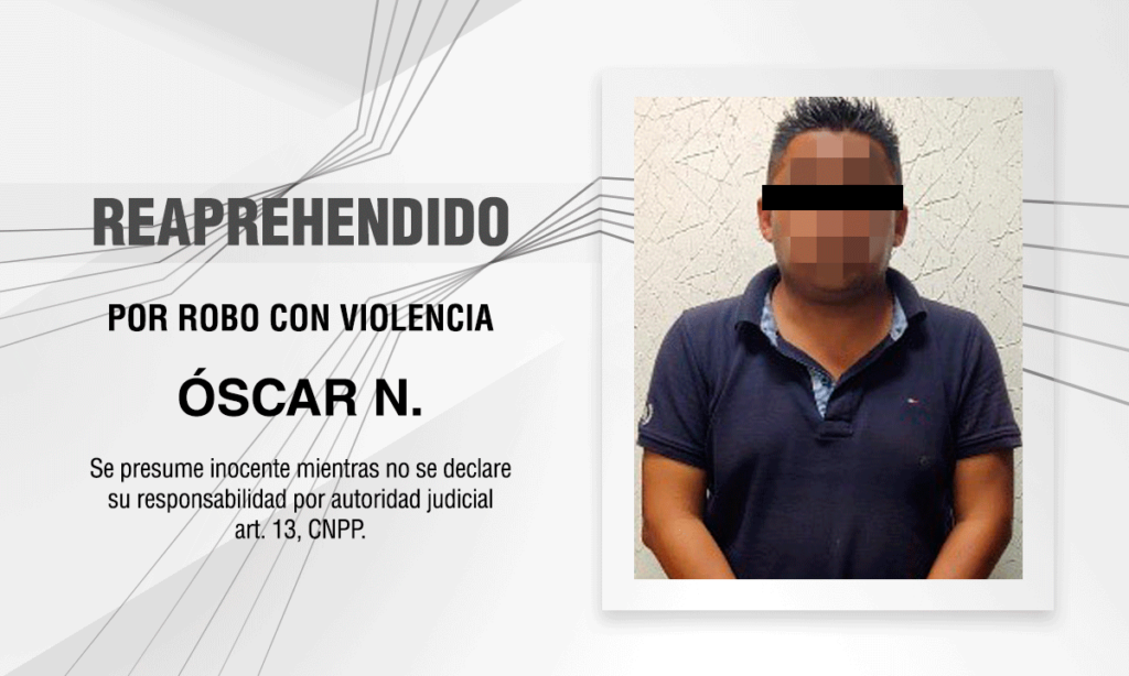 Por lo anterior y luego del trabajo de campo realizado por la Policía de Investigación tlaxcalteca, Óscar N., fue reaprehendido el 2 de mayo del año en curso en la colonia El Llano, en San Benito Xaltocan y entregado a autoridades de la entidad vecina, quienes darán seguimiento al trámite legal correspondiente.