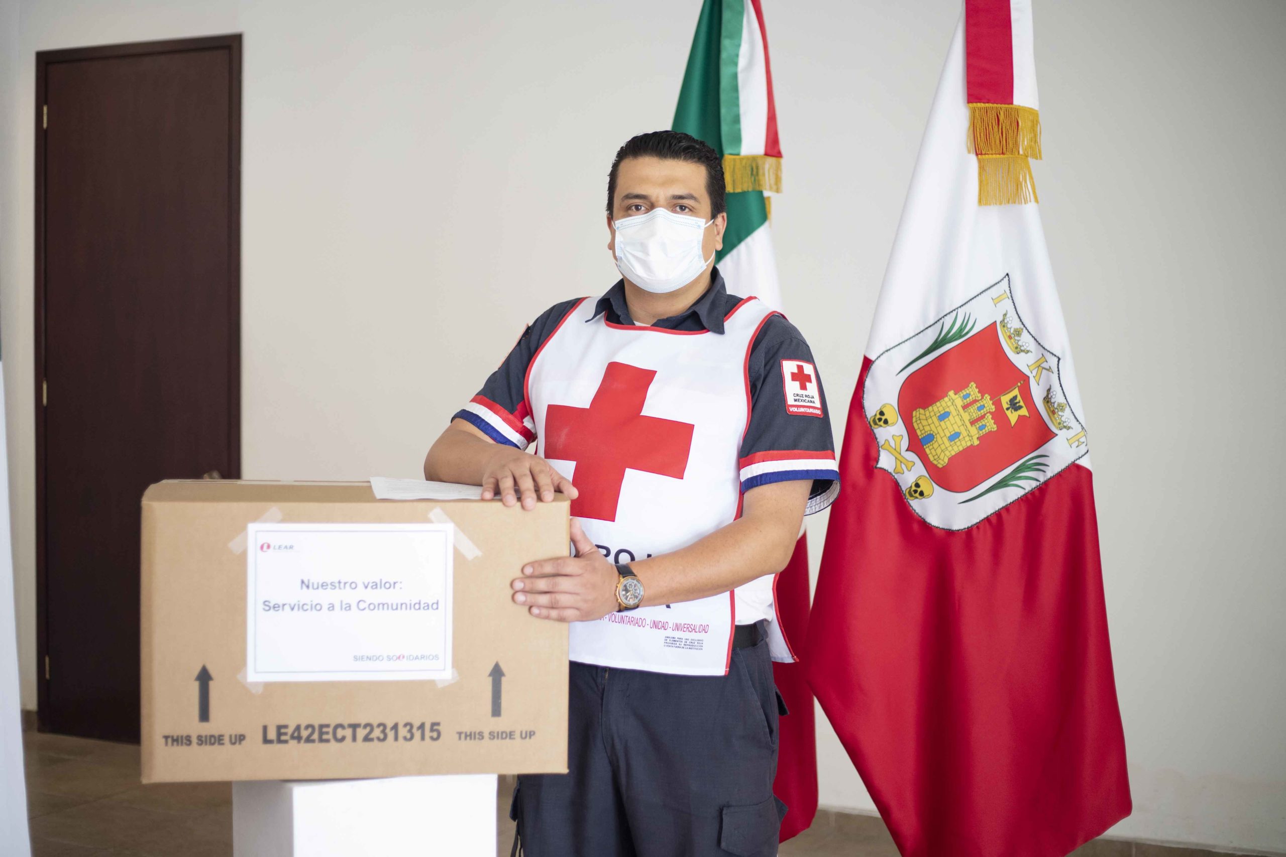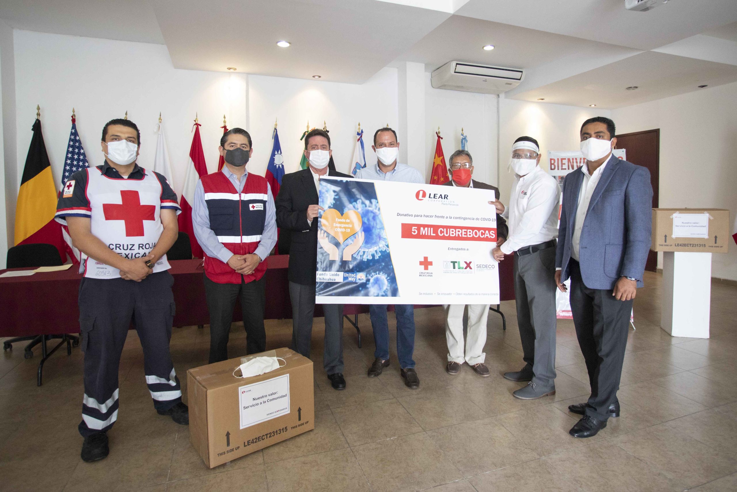 La Secretaría de Desarrollo Económico (Sedeco) recibió la donación de 5 mil cubrebocas por parte de la empresa Lear Corporation, que serán destinados a la Delegación de la Cruz Roja en el estado para fortalecer las condiciones de bioseguridad de paramédicos y personal de la institución.