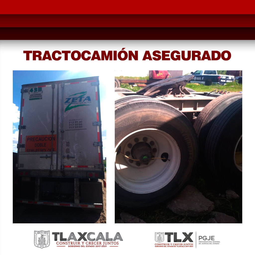 Los hechos se desarrollaron cuando los investigadores ubicaron en la comunidad de Jesús Tepactepec, municipio de Nativitas, una caja seca marca Fruehauf, tipo caja seca, modelo 2014, color blanco, con placas de circulación del servicio público federal y otra unidad marca Fruehauf, tipo Dolly, modelo 2017, color blanco, los cuales se encontraban mal estacionados a la orilla del acotamiento.