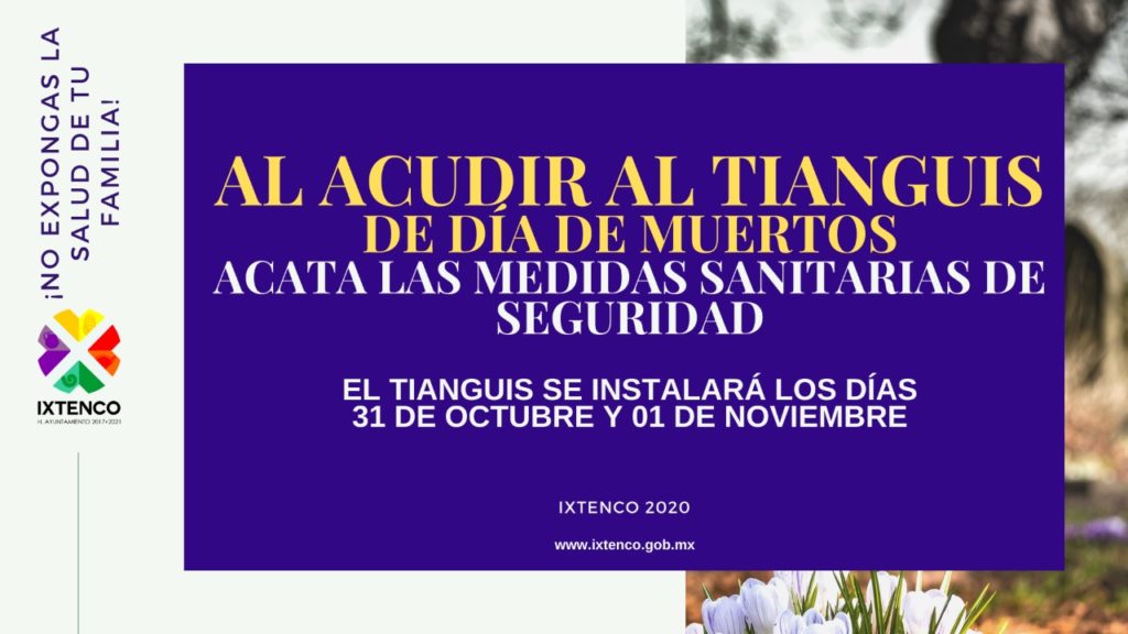 El Gobierno Municipal de Ixtenco, que encabeza Miguel Ángel Caballero Yonca, indicó que toda vez que el tradicional tianguis de día de muertos se instalará como de costumbre, se reforzarán las medidas sanitarias de seguridad, a fin de evitar una ola de contagios por COVID-19.