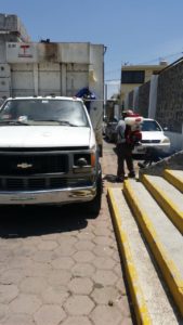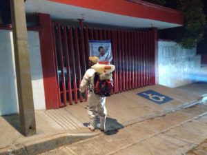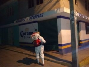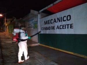 Sanitización de las calles del municipio, a cargo del personal del Ayuntamiento, con equipo propio que fue adquirido para tal fin.