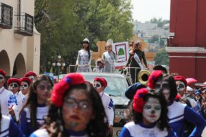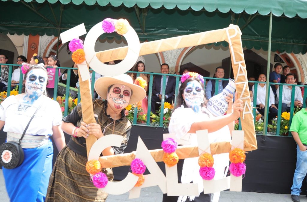 En un ambiente de armonía, alegría y júbilo, familias completas disfrutaron del paso de los contingentes que recordaron el tradicional Día de Muertos, encabezados por instituciones de educación básica, media superior y superior, municipios, el sector privado y camadas de huehues que dieron alegría y color al evento.