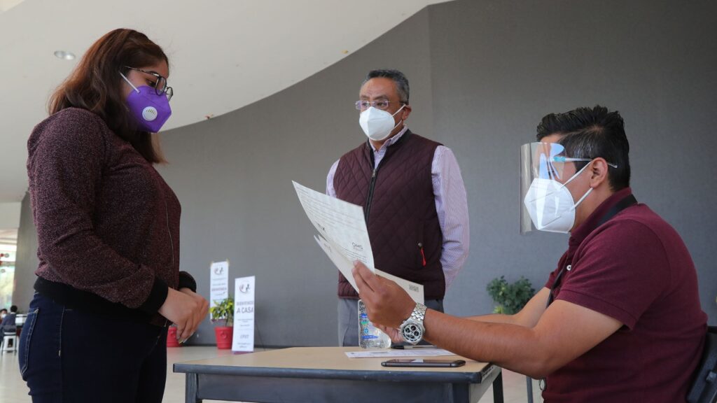 El proceso de inscripción se realizó en el Centro de Convenciones de Tlaxcala, fue ágil y rápido, se activaron los protocolos sanitarios, se tomó la temperatura, se aplicó gel antibacterial, y se recomendó el distanciamiento.