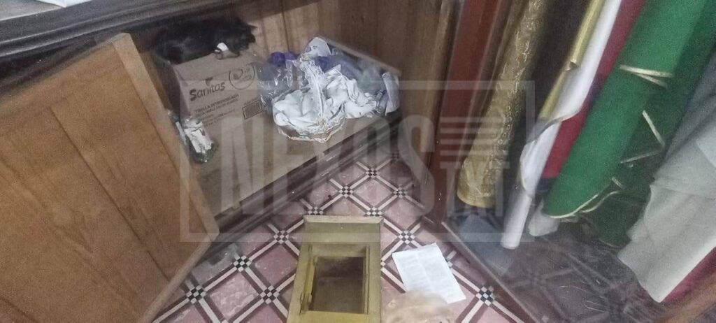 El hurto fue descubierto la tarde de este martes por el fiscal de la iglesia, quien arribó al recinto minutos antes de las 17:00 horas y se percató de que uno de los candados colocados en una de las puertas había sido cortado. Al ingresar, encontró diversas pertenencias fuera de lugar y evidente desorden en el interior.