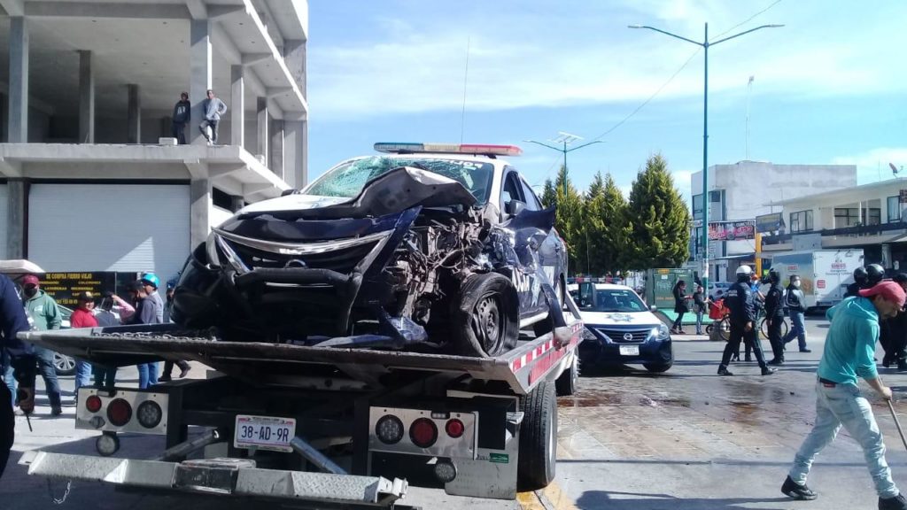 Pero en esa intersección, el vehículo cortó su circulación y colisionó con la patrulla, lo que dejó un saldo de dos oficiales gravemente lesionados, quienes ya son atendidos en el Hospital Regional de Tzompantepec.