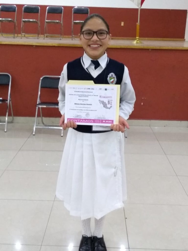 La menor Bibiana Sánchez Romero, será la representante del Distrito X ante la Cámara de Diputados en el Parlamento Infantil 2019-2020, a desarrollarse del 26 al 30 de abril del 2020 en la ciudad de México.