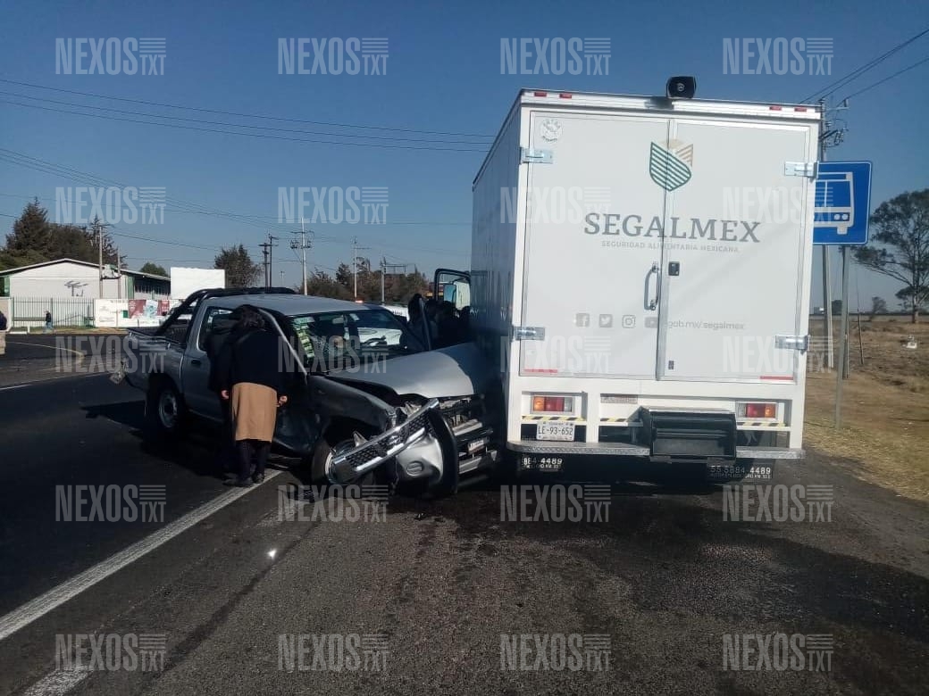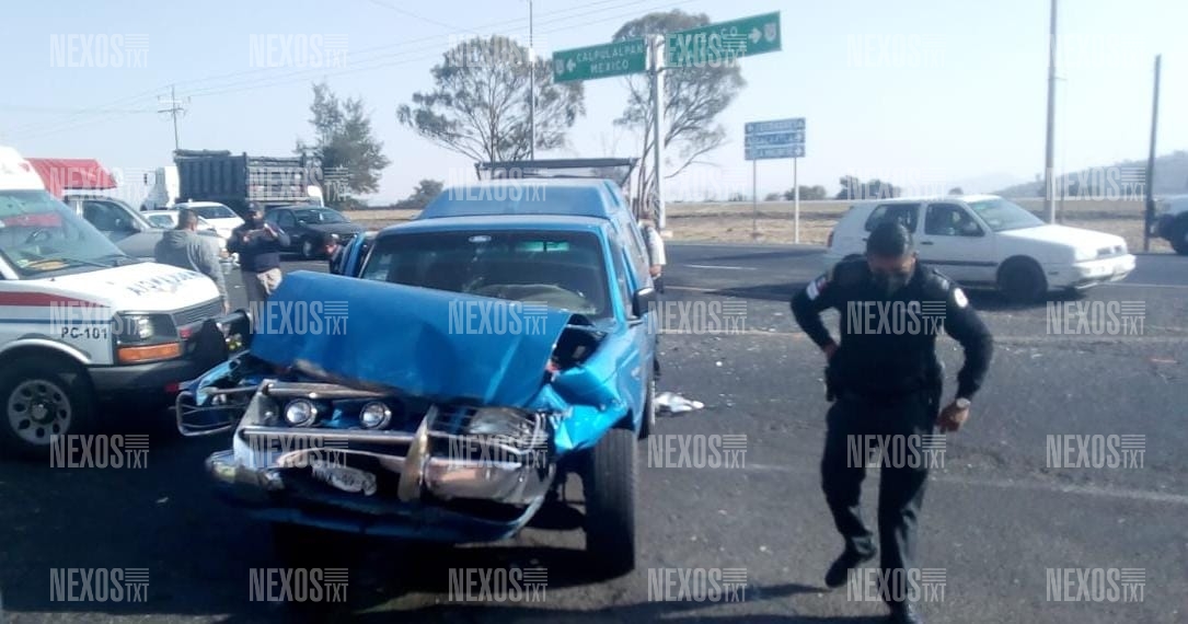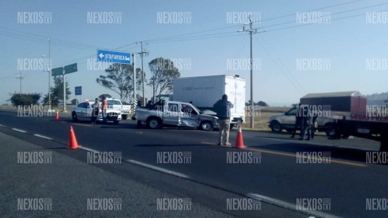 Seis lesionados fue el saldo que dejó el choque de dos camionetas tipo Pick Up y una unidad de tres y media toneladas, en la carretera federal México-Veracruz, a la altura del entronque a Francisco I. Madero, del municipio de Nanacamilpa, la mañana de este sábado 20 de marzo.
