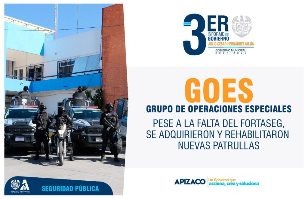 A 36 meses en el gobierno municipal de Apizaco, el alcalde, Julio César Hernández Mejía, consolidó la Dirección de Seguridad Pública, Vialidad y Transporte, como una de las corporaciones mejor equipadas, capacitadas y actualizadas del Estado, pese a la privación del FORTASEG.