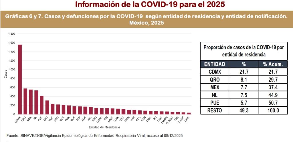 Pese a ello, muestra una incidencia menor frente a otros estados de la región centro, como Puebla, que acumula 413 contagios y 17 fallecimientos, aunque ambos conforman un corredor regional que sigue bajo monitoreo sanitario.