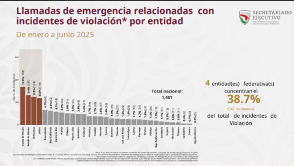 Sin embargo, en materia de llamadas de emergencia, el estado se ubica por encima de lugares como Aguascalientes, Oaxaca y Campeche, que reportaron cifras más bajas.
