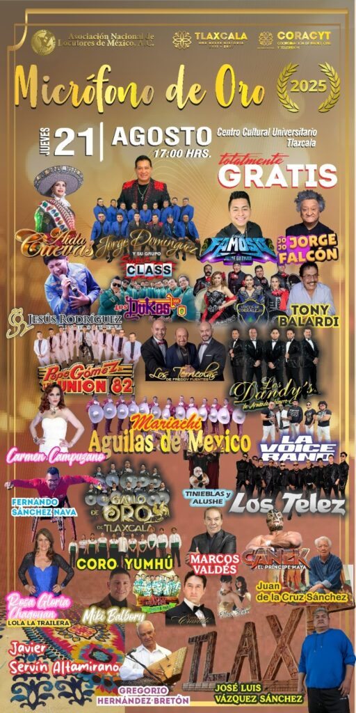 Por primera vez en su historia, la entrega del “Micrófono de Oro 2025” se realizará en Tlaxcala, evento que reconoce la trayectoria y el talento de destacados locutores, artistas y personalidades de toda la República Mexicana.
