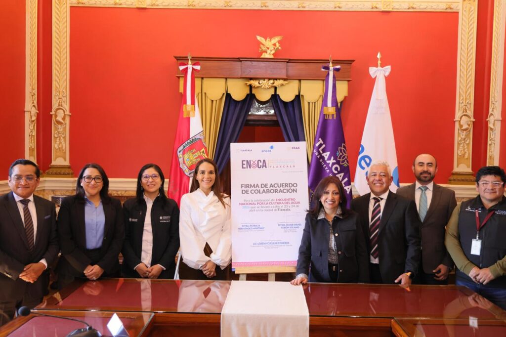 La gobernadora de Tlaxcala, Lorena Cuéllar Cisneros encabezó la firma del Convenio de Colaboración para la celebración del Encuentro Nacional por la Cultura del Agua, que se realizará los días 23 y 24 de abril en el parque Federico Silva, consolidando a la entidad como referente nacional en infraestructura hidráulica, saneamiento y educación ambiental.