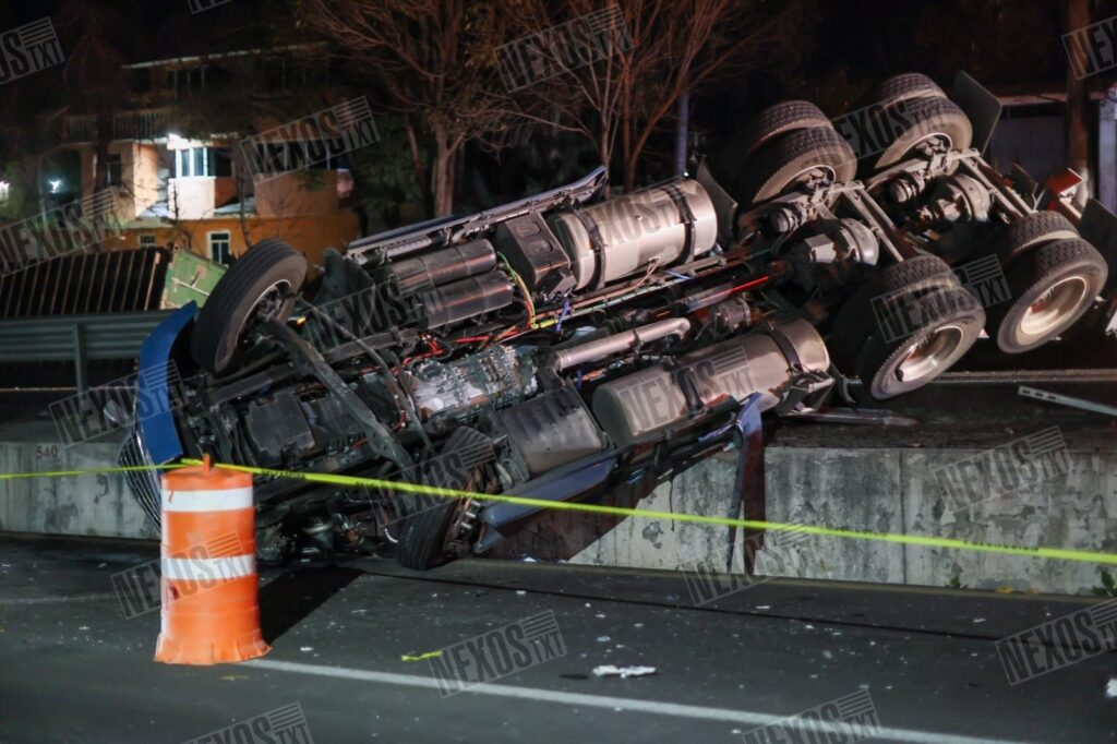 El incidente ocurrió cerca de las 02:00 horas de este lunes, cuando el conductor de un tractocamión de la línea Phi-Cargo, con número económico 02, perdió el control de la unidad y volcó sobre su costado derecho.