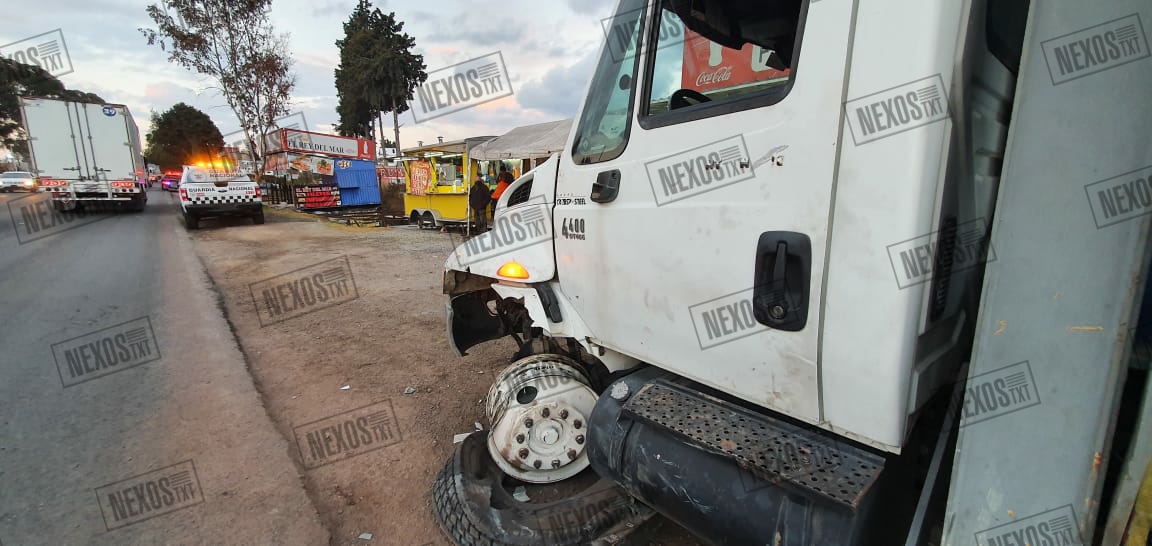 El conductor de un tráiler embistió a un vehículo, una grúa y chocó contra la banqueta y muro de una tienda de conveniencia, ya que se quedó sin frenos en la carretera Tlaxco – Apizaco, a la altura de la comunidad de Granjas de Guadalupe, como referencia en la tienda de conveniencia que se ubica en la gasolinera conocida como “La Macana”, al tarde de este lunes.