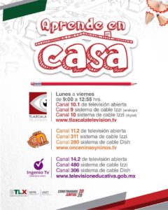 La Coordinación de Radio, Cine y Televisión de Tlaxcala (Coracyt), a través de Tlaxcala Televisión, transmite a partir de este martes 21 de abril, la programación “Aprende en Casa”, estrategia que permitirá a estudiantes tlaxcaltecas continuar con sus actividades escolares desde sus hogares durante la emergencia sanitaria por Covid-19.