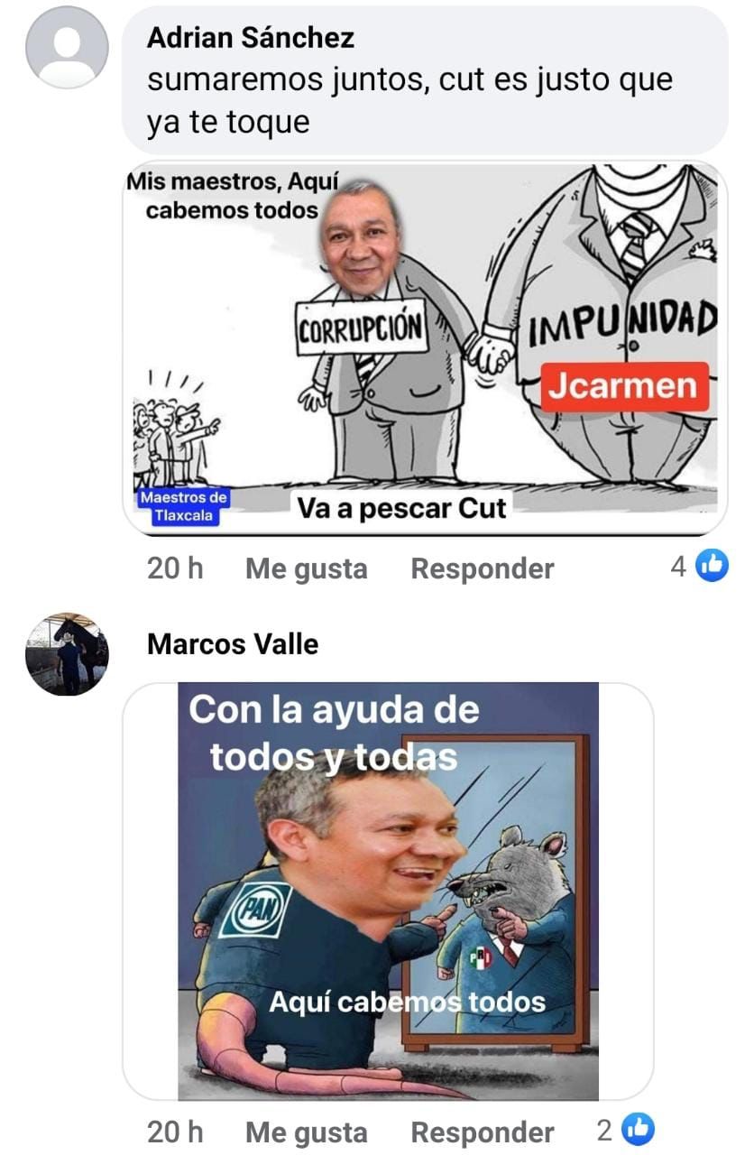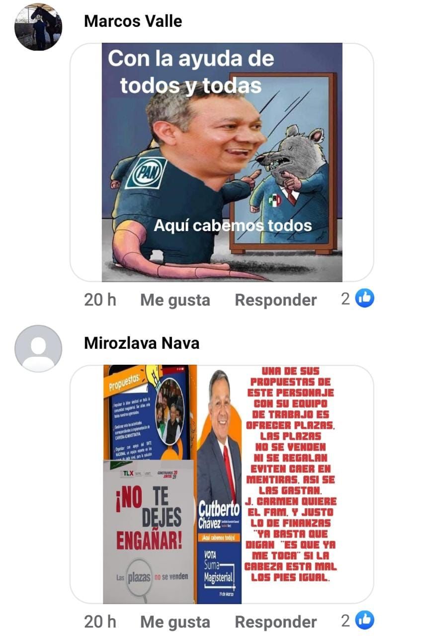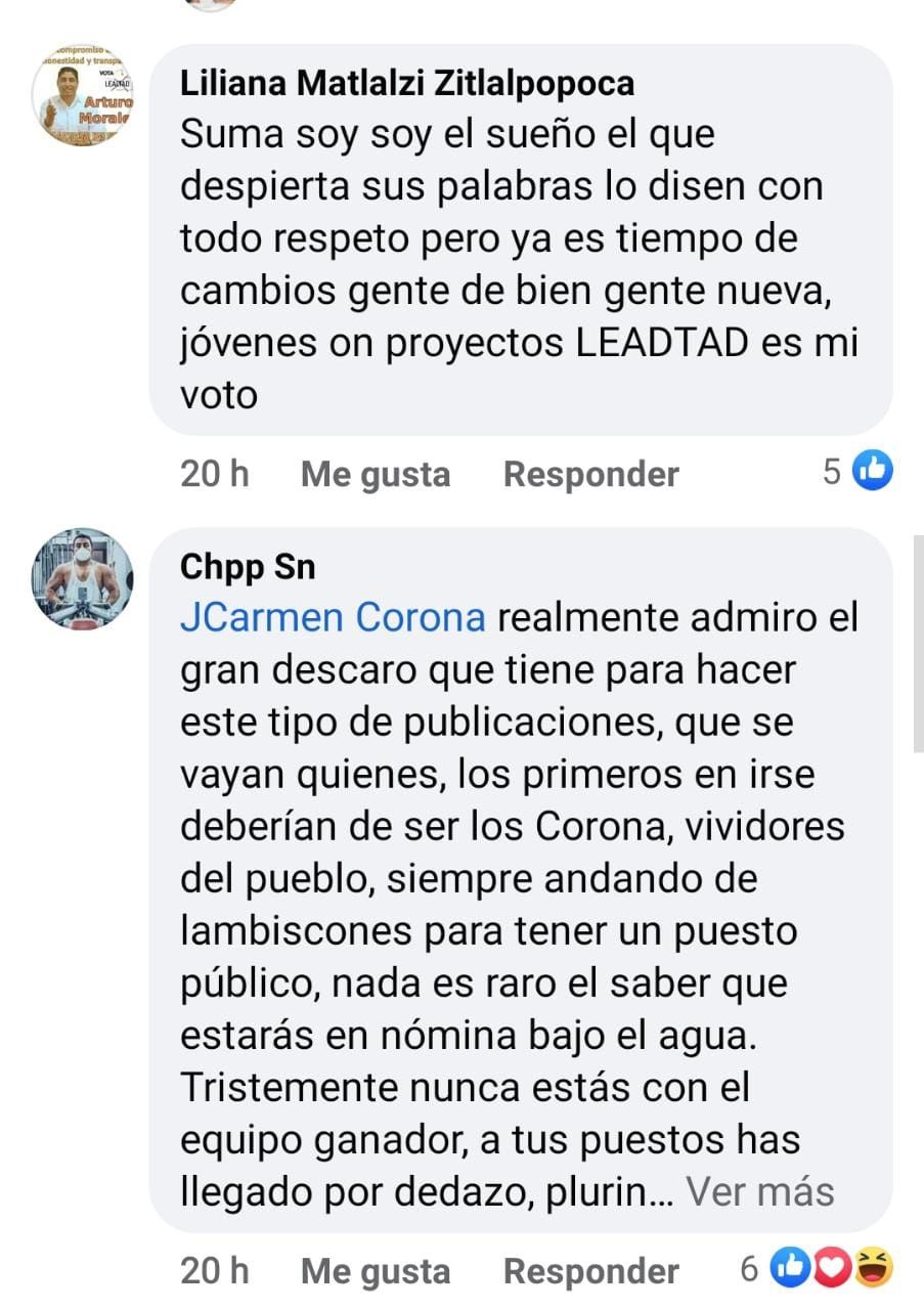 Así mismo otro usuario argumentó: ¨Los primeros en irse deben ser los corona, vividores del pueblo, siempre andando de lambiscones¨, ¨Su pupilo Cutberto está haciendo lo mismo que usted, usan al magisterio como escalón…¨ Recordemos que será el próximo 21 de Octubre la fecha para la elección en un horario de 10 a 1 pm.