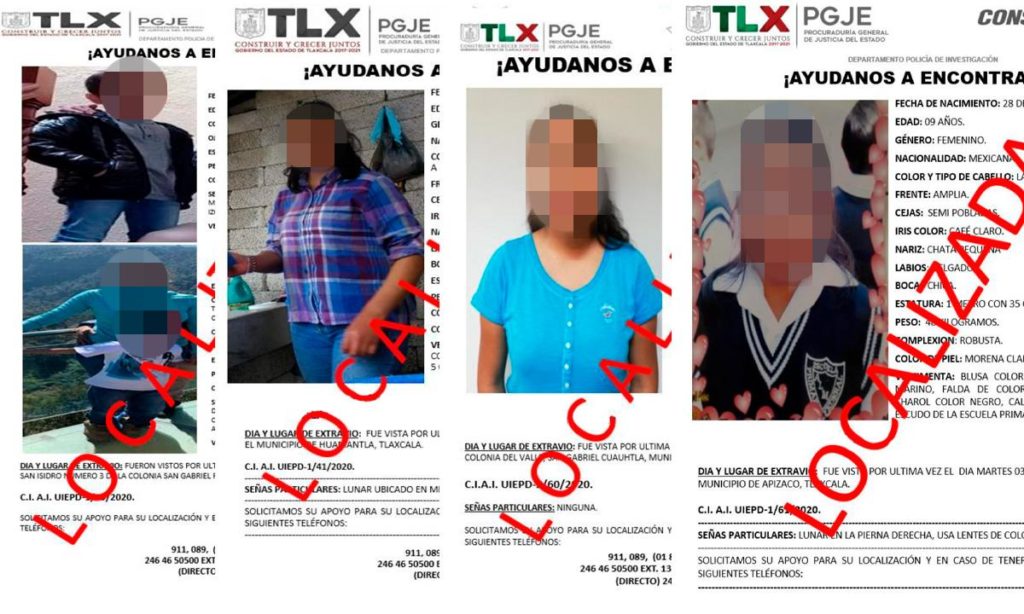A través de las denuncias hechas en momentos distintos a cargo de familiares de los menores en las instalaciones de la PGJE por hechos probablemente constitutivos de delito, se activaron los protocolos correspondientes para su localización.