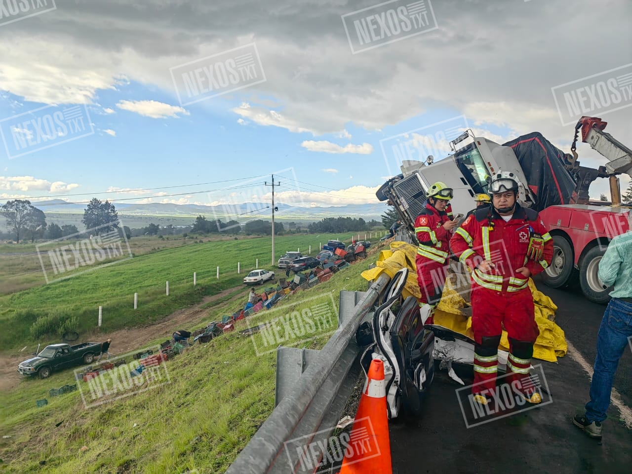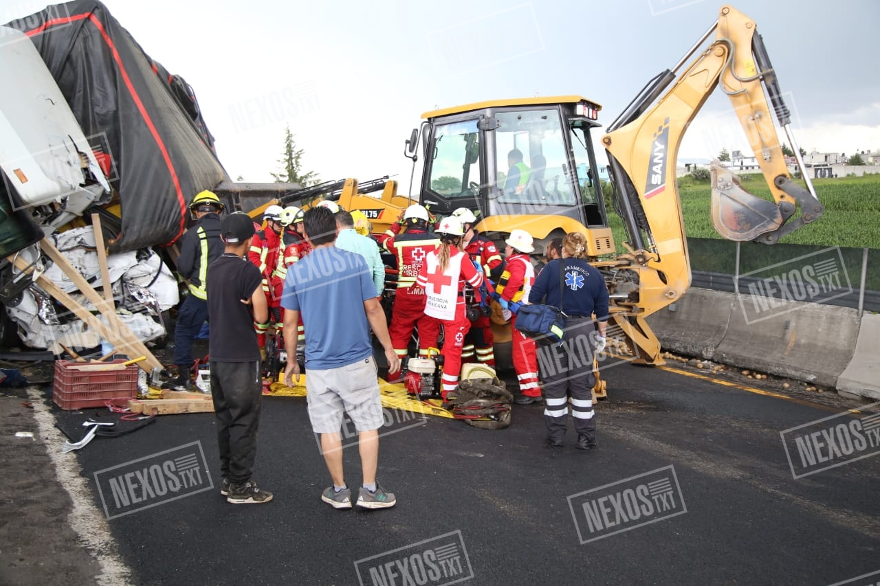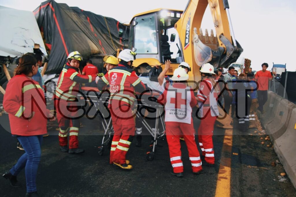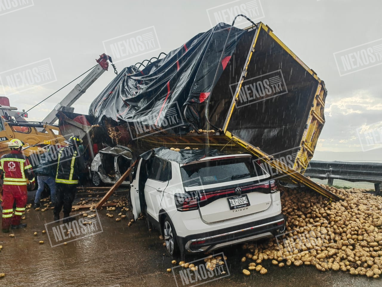 El percance ocurrió en dirección a Texcoco, cuando la pesada unidad —que transportaba papas y portaba placas del estado de Tlaxcala— se proyectó contra un Volkswagen Taigun y un Nissan Versa, ambos de color blanco, lo que dejó un saldo de un hombre muerto y dos mujeres lesionadas.