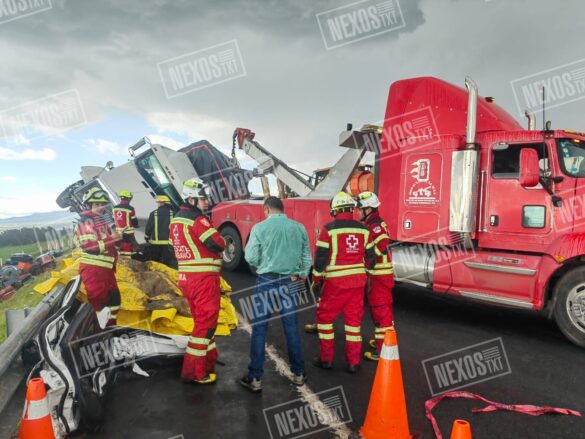 Personal del heroico cuerpo de bomberos y paramédicos de la Cruz Roja Mexicana, rescataron de entre los fierros retorcidos de su unidad, a una mujer que quedó atrapada en el interior de su vehículo que fue aplastado por un tortón, en la carretera federal México – Veracruz, tramo la Y griega – Calpulalpan, a la altura de Santiago Tlalpan, municipio de Hueyotlipan, la tarde de este domingo 3 de agosto. Lamentablemente, su esposo, el conductor, murió prensado.