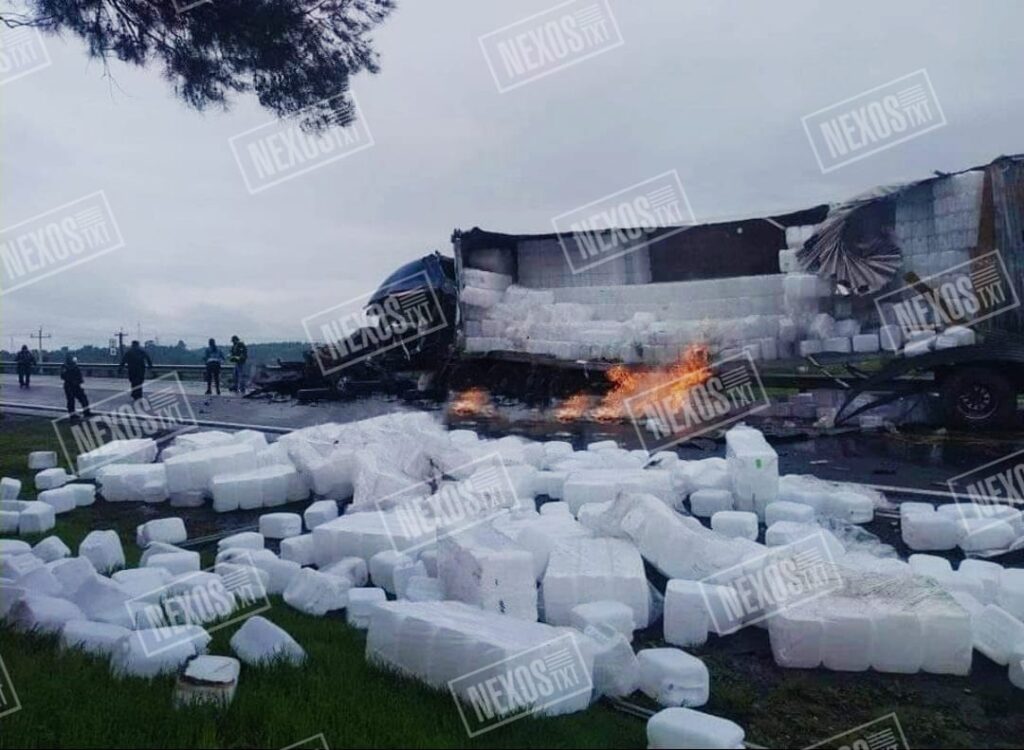 El encontronazo frontal provocó que una de las unidades pesadas, de doble semirremolque, se calcinara parcialmente, pero además, con la trágica muerte del operador, ya que quedó prensado en los fierros de su tractocamión.