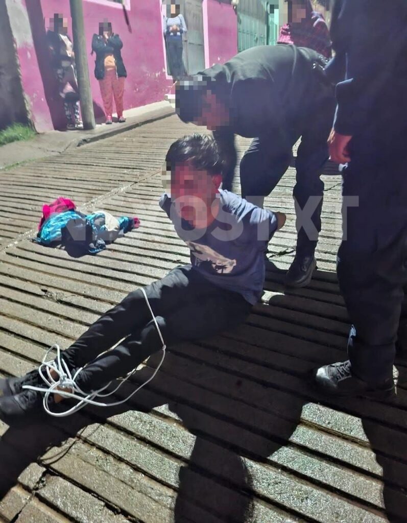 De acuerdo con testigos, el hombre fue sorprendido dentro de una vivienda y retenido por los habitantes, quienes lo amarraron y colocaron en la vía pública, exigiendo que las autoridades municipales actuaran con firmeza.
