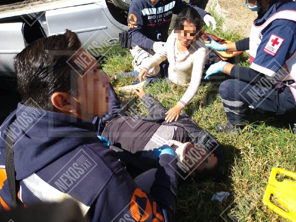 Dos lesionados fue el saldo que dejó la volcadura de un vehículo Dodge, tipo Neón, la mañana de este viernes, en la comunidad de Santa Rosa, municipio de Apizaco.