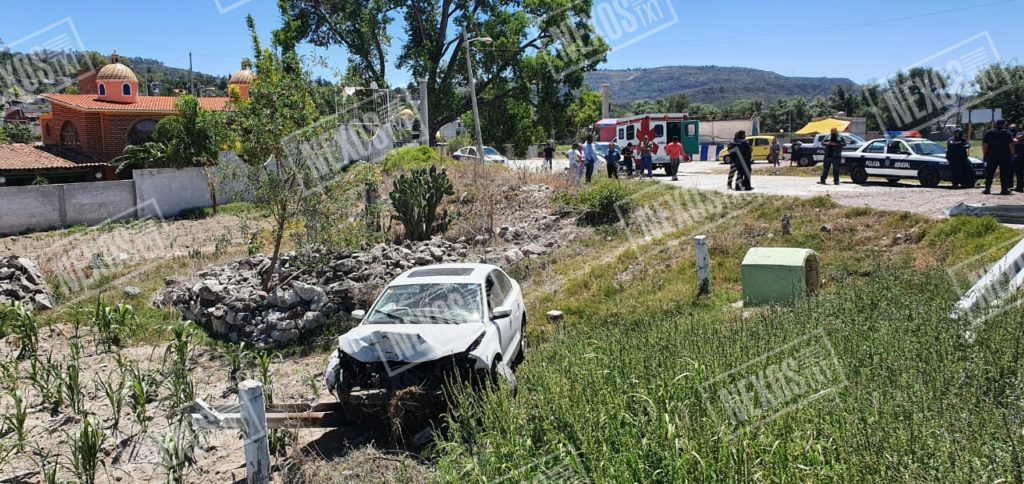 Un vehículo tipo jetta de la marca VW se impactó con el muro de contención para despues terminar varado en terrenos de labor por evitar arrollar a un can.