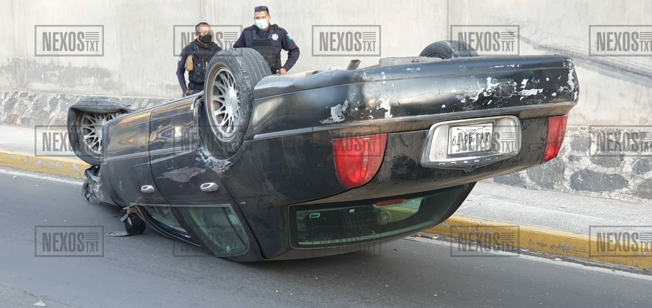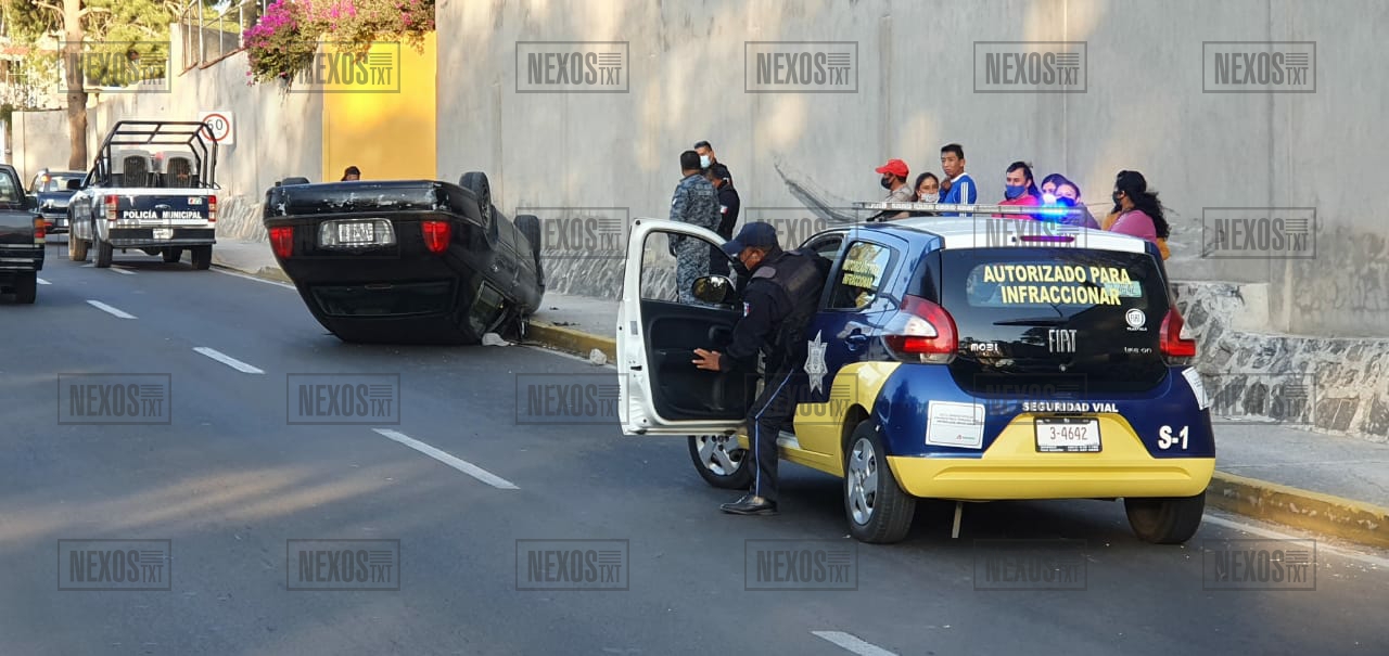 La volcadura de un vehículo Ford, tipo Grand Marquis, movilizó a oficiales del municipio de Apizaco y Yauhquemehcan, sobre el bulevar “El Pana”, la tarde de este domingo.