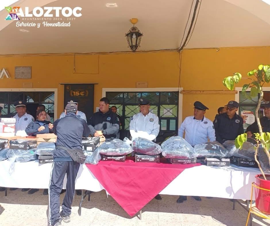 El Gobierno Municipal de Xaloztoc, encabezado por el presidente Elías Nava Sánchez, realizó este lunes la entrega de 35 uniformes completos, alarmas vecinales, botones de pánico y motopatrullas al personal de Seguridad Pública, fortaleciendo las acciones de prevención, vigilancia y proximidad social en el municipio.